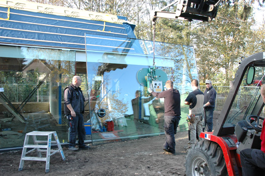 The construction of Shift’s design for the transformation of a villa into a dentist practice runs on schedule. After the prefabricated timber casco was installed in just a few days, the large glass panels have been installed successfully. Soon the extension will be entirely clad in zinc.