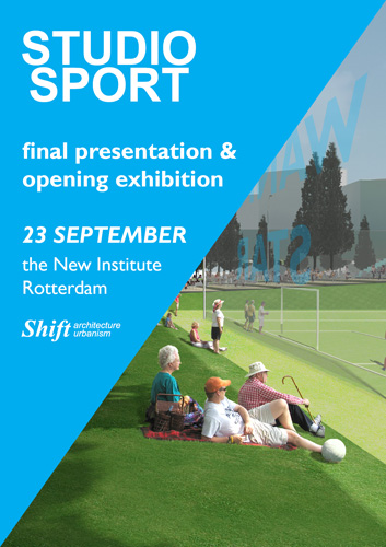 Shift presents the final results of their research ‘Studio Sport’ on the 23rd of September in the New Institute (former NAi). With the presentation and the accompanying exhibition Shift shows how, why and where sports should be mobilized to boost urban quality. The core of the research consists of six case studies that have been done in collaboration with the municipalities of Amsterdam, Rotterdam and the Hague. The event is rounded off by a discussion with prominent representatives from the field of spatial planning and/or sport, the launch of the website www.sportspace.eu and the opening of the Studio Sport exhibition in the New Institute.
