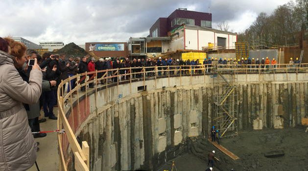 After almost six months of preparation and digging works, the construction site of Museum square Limburg has reached its lowest point! This special event was celebrated together with culture deputy Ger Koopmans from the Province of Limburg and local youth.