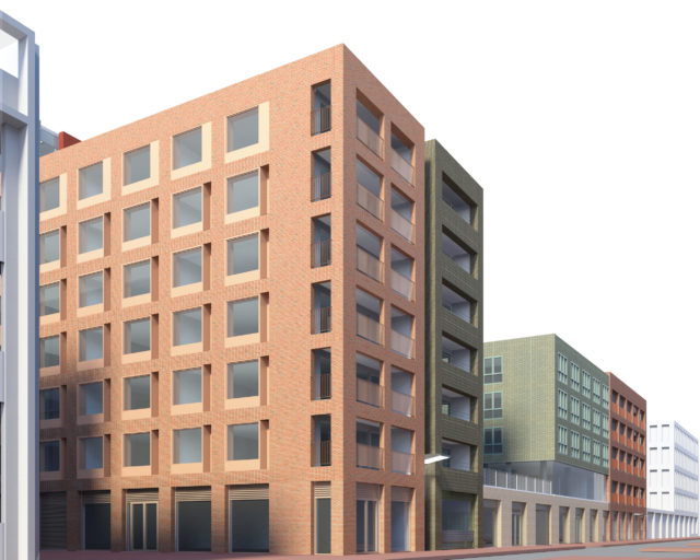 We handed in the documents for the building permit of XS Deluxe Houthaven in Amsterdam. The complex consists of a family of nine buildings with 235 micro-apartments grouped around a green courtyard with collective amenities. Currently working on the apartment interiors, which feature an XL cabinet containing all utilities, including bed alcove.