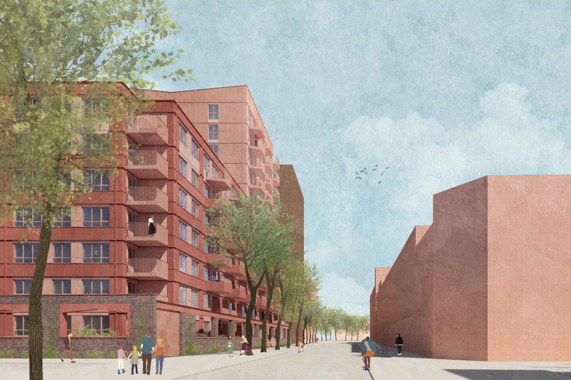 The masterplan by Mecanoo aims to re-imagine the site’s industrial heritage by preserving iconic structures and by the introduction of new housing blocks with an industrial DNA.